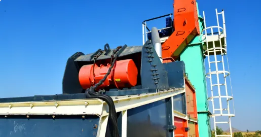 The inclined circular motion 4-deck vibrating screen is run by two electric vibrators. The vibrating screen has special design feature to keep each screen cloth always in tight position by numbers of springs. This gives the screen cloth a longer life and no dead zone found on it to yield the best screening efficiency. Entire screen basket is enclosed in a fixed casing. The free-floating screen design (supported on heavy action springs) prevents any vibration being transferred to the weighing scales to give accurate weighing efficiency. A wider platform with easy access eases the maintenance of the screens.