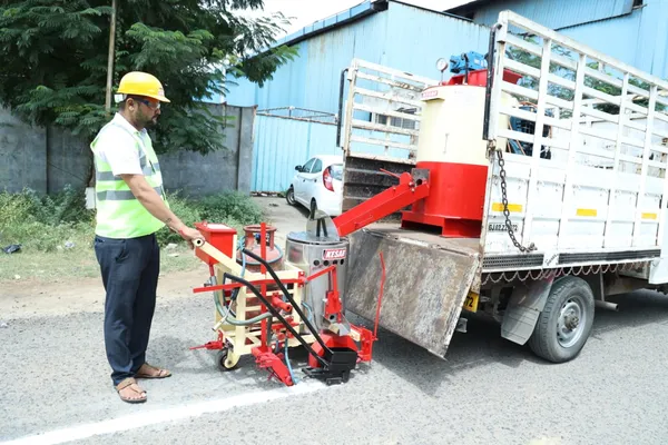 A Contribution towards better safer roads Kesar – Thermo-plastic Road Marking Machine for application of hot Thermoplastic making on Roads, Highways-for guiding and controlling traffic, City Roads – for smooth flow of traffic, Roads on the mountains, along the hills-to warn the drivers about the hazardous locations, Side streets, Parking lots, Factory floor, Air-ports & runways, Sports ground, Railway platform, Bus-stops, zebra crossings and other surfaces.